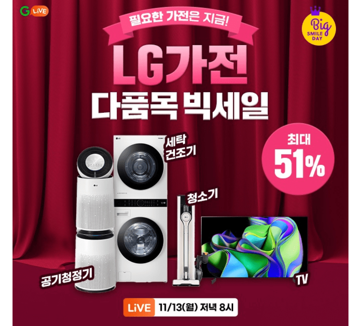 믿고 쓰는 LG가전 최대 51% 할인을 놓치지 마세요!