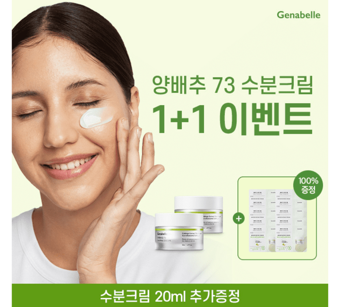 제나벨이 카카오톡에서 브랜드데이 행사를 진행합니다. 토너패드, 톤업선크림, 리프팅세럼, 속건조토너등 할인행사를 진행하며 양배추73수분크림도 1+1 이벤트를 진행하며 20ml까지 추가증정 드립니다. 수분크림 속 피부 진정 최강자 OOOOOOO이 진정에 도움을 줍니다.