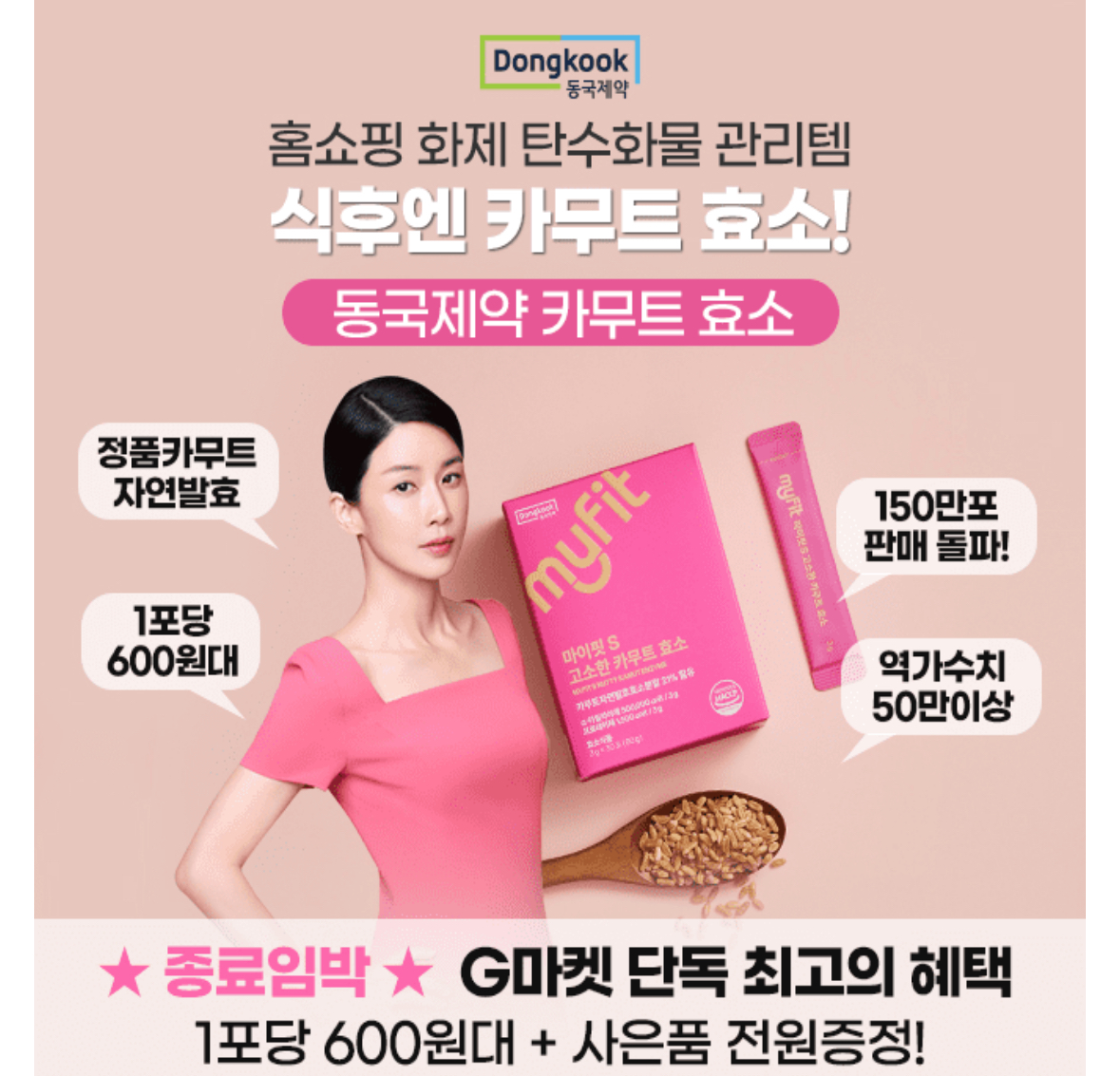 ‘효소’는 소화흡수와 분해배출에 기여하여 ‘생명의 불꽃’이라고도 불리우는데요. 동국제약 마이핏S 카무트효소는 정제효소 없이 탄수화물 분해 효소 & 단백질 분해 효소의 역가수치를 501,500까지 높인 100% OO발효효소입니다 😊 여기서 OO은? (힌트 :ㅈㅇ)