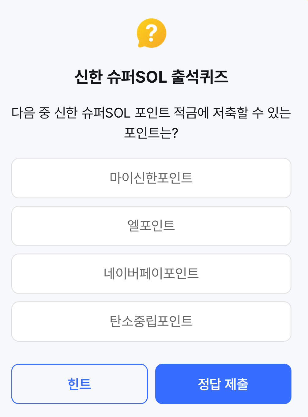 다음 중 신한 슈퍼SOL 포인트 적에 저할 수 있는 포인트는?
